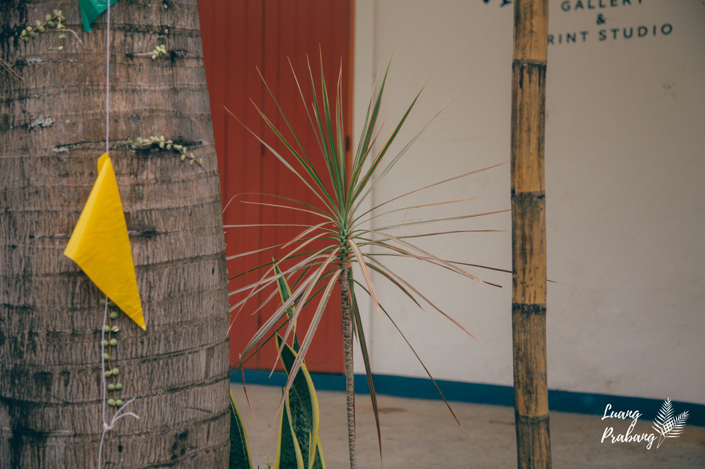 主干道附近的小巷,用小彩旗装饰着,狗吠,鸡鸣,风铃声……宁静得可以从空气中清晰地分辨出这些小小的声源。这里集中力琅勃拉邦的精华部分,三角梅和鸡蛋花开满墙头,古老的寺庙与浪漫的法式建筑分布在街道两旁,意外地和谐相宜,坐在洋楼里喝咖啡,食下午茶,不时,穿着僧袍的小沙弥走过,东西方的文化如此暧昧地融合到一起,便是琅勃拉邦的独特魅力。