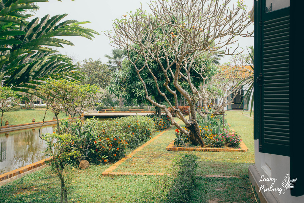 曾经是老挝一位王子的官邸,客房风格颇为清静优雅,我觉得用一种颜色代表 琅勃拉邦 的话,就是一种典雅的豆沙绿,搭配上殖民风格的法式元素设计,异国情调中带有复古风情。庭院内种植着老挝的国花——鸡蛋花。