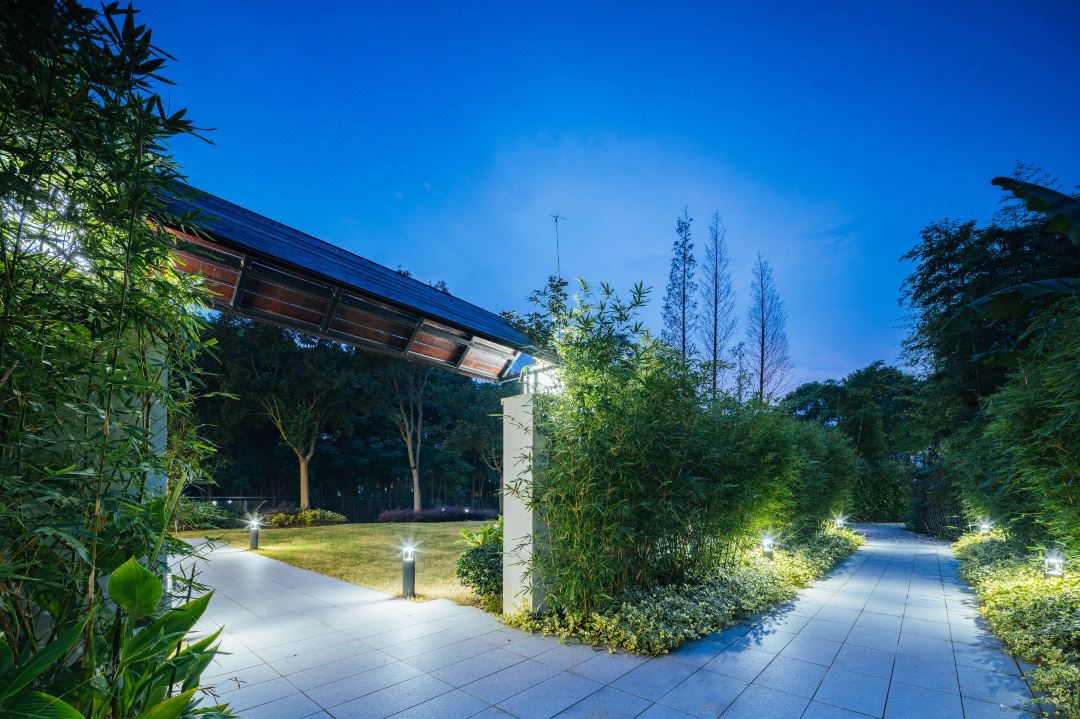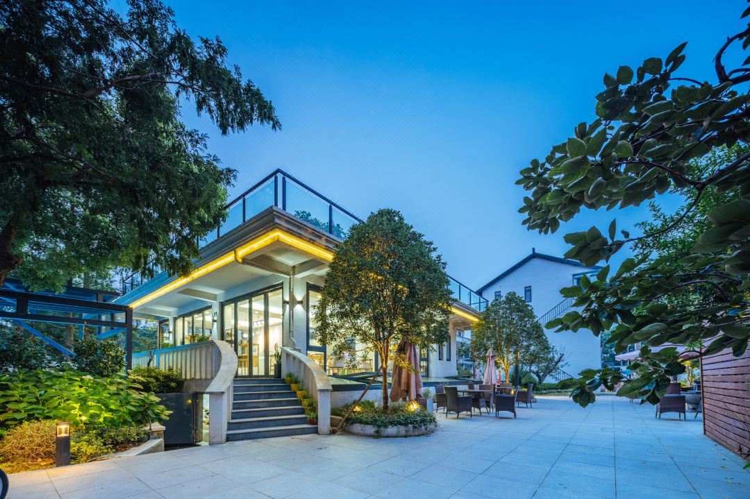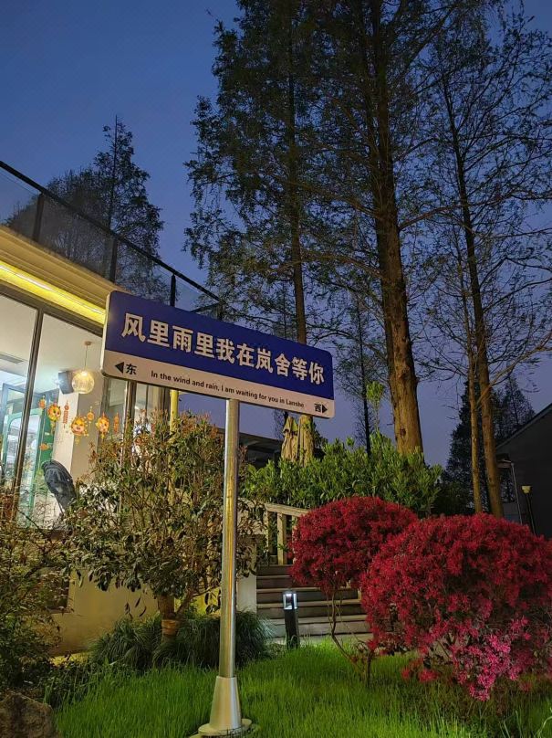 民宿是紧邻迪士尼旅游度假区的一片世外桃园,岚舍大门紧靠栏园路,驾车沿着栏园路的树洞缓缓驶入,清风拂面,鸟叫蝉鸣甚是惬意,随之映入眼帘的就是岚舍民宿,一片灰瓦白墙超大落地窗的的别墅建筑群。
