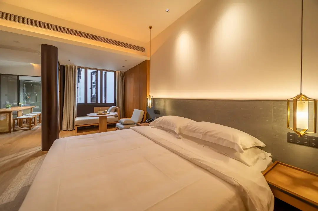 苏州黎里南舍别院坐落在享有“全国历史文化名镇”的黎里古镇,距游客中心一步之遥,酒店以江南古典建筑风格独具匠心,白墙黛瓦马头墙,花园式庭院假山,三进庭院,四水归堂,浓浓古镇水乡风情,中式古典雅致的家具融合现代明朗简洁的设计和布局,彰显尊贵品质及江南文化魅力。知名设计师精心打造新中式风格客房,酒店二十余间品质客房,无卡取电、全屋小度语音精灵语音控制、智能马桶、智能灯光、全屋地暖;全天候管家服务,为你提供一个贴心舒适的居停空间。酒店设有会议室、茶室,书吧等配套设施,是您商务出行、团建会议、亲子旅游、休闲放松的佳选。