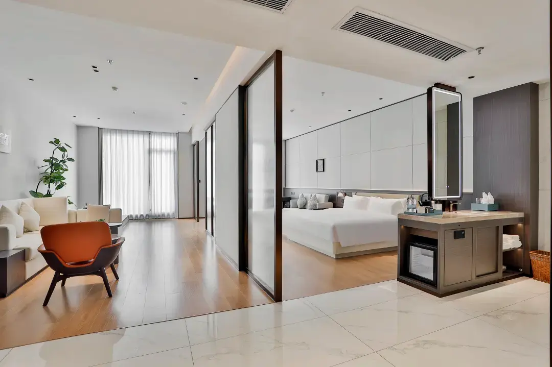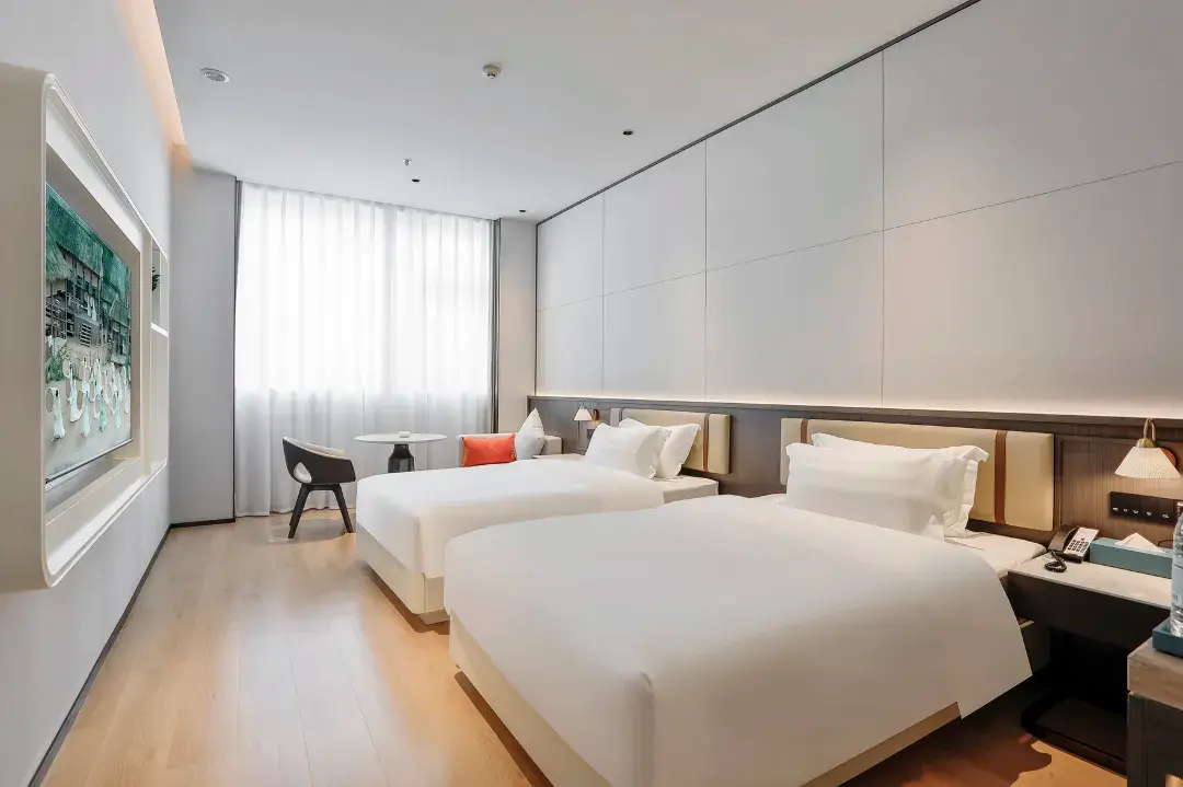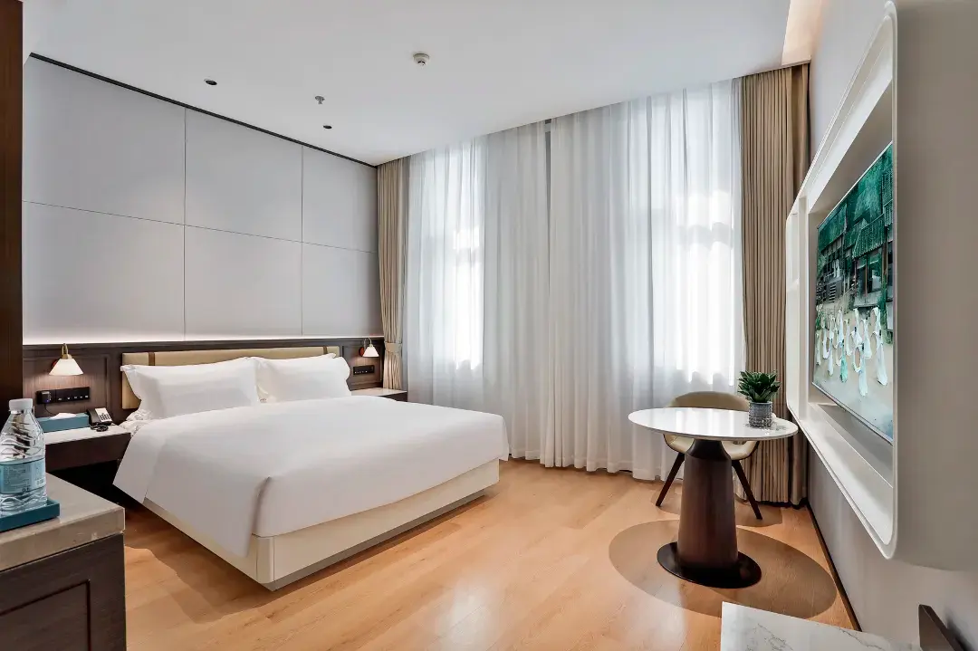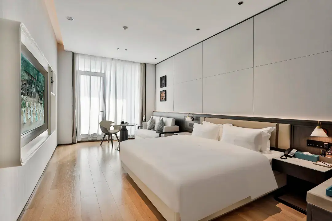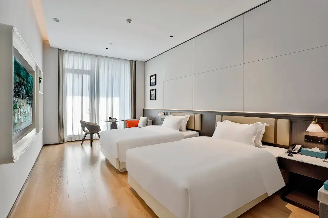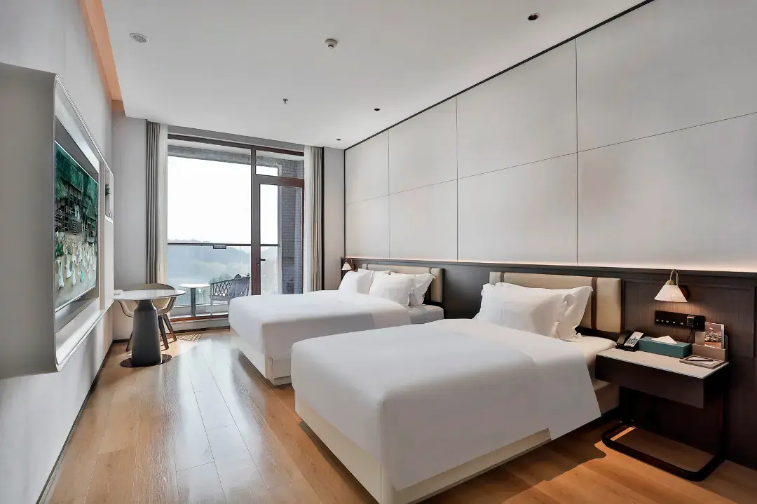 酒店拥有精致客房,其中豪华湖景阳台房43间,在客房内即可近距离感受天井湖水天一色的诗意画卷,另设2个会议室、同时配有自助早餐厅、酒吧休闲区、户外休闲区、健身房、自助洗衣房等功能分区,是商旅、度假、休闲人士的理想之选。